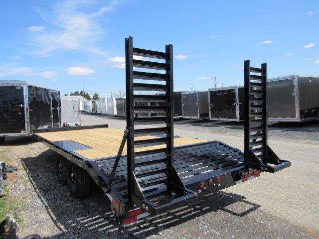 Deck 96″ x 20′, 7000lb Dexter Axles, 102″W to Rub Rail, Tires 235/80/R16, 2-5/16″ Coupler, LED Lights, Spare Tire Carrier, Tool Tray, 8K Drop Leg Jack, Adjustable Coupler, 17′ Flat Plus 3′ Self Clean Beavertail, Ladder Ramps