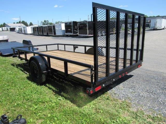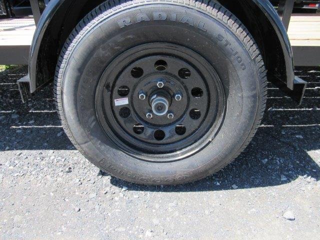 83” Deck Width, Rear Landscape Ramp Gate, Wood Decking, Pipe Top Rail, Spare Tire Carrier, LED Lights, Removable Ramp Gate, Tie Downs, Tires 205/75/R15 Radials