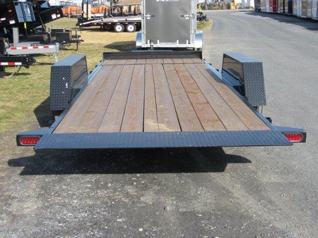 Gravity Split-Tilt Deck, 7K Drop Leg Jack, Electric Brakes all 4, Deck 82″W x 22’L, 4′ Stationary Deck Plus 18′ Tilt Deck, (2) 7000lb Torsion Axles, LED Lights, Tires 23580R16, Adjustable 2-5/16″ Ball Coupler, Tool Box, Stake Pockets, Pressure Treated Deck, Five Year Warranty