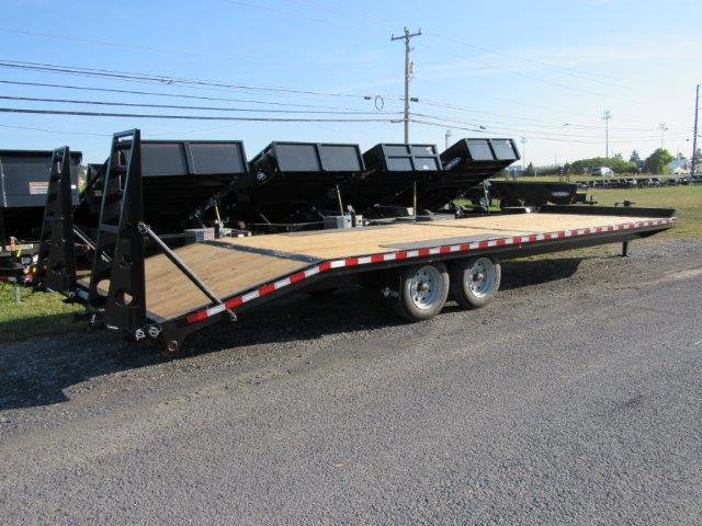 Deckover Equipment Trailer, 5′ Wedge Style Ramps, Electric Brakes all 4, Deck 102″W x 28’L, 23′ Flat Deck Plus 5′ Fixed Beavertail, (2) 8000lb Spring Axles, LED Lights, 10″ Channel Frame, Tires 215/75/R17.5 Adjustable Pintle, Tool Box, Stake Pockets, Rub Rail, Pressure Treated Deck, 12,000lb Side Wind Drop Leg Jack, Five Year Warranty