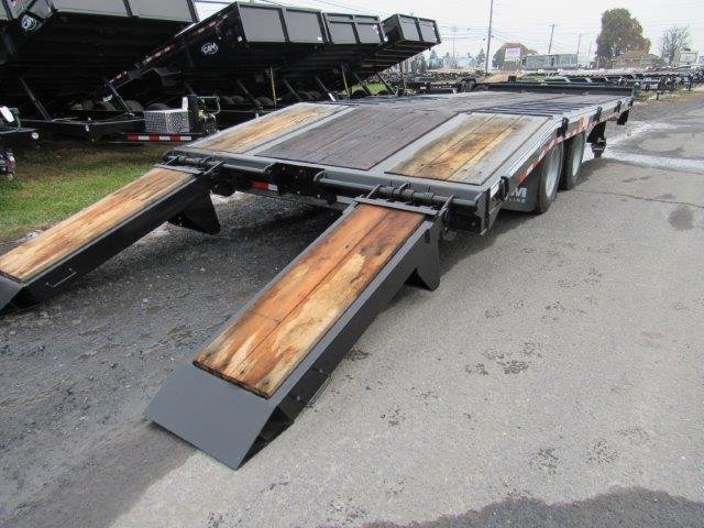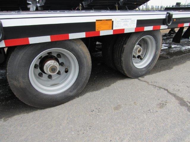 5′ Bi-Directional Wood Filled Ramps, Deck 102″W x 20’L Flat Deck Plus 5′ Beavertail, Air Brakes, Dexter Oil Bath Axles, Tires 235/75R17.5LRH, Adjustable Pintle, Stake Pockets, LED Lights, Tool Box, Dual 50K 2-Speed Jacks
