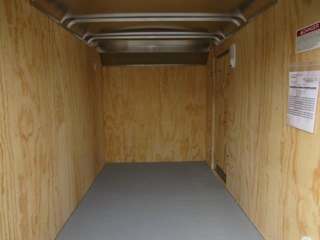 Rear Ramp Door, Side Door, No Brakes, Deck 56″W x 117″L, Rear Door 53″W x 56″H, Side Door 23″W x 55″H, Interior Height 62″, 3500lb Torsion EZ Lube Axle, Tires ST20575R15, 2″ Ball Coupler, 12V Dome Light, 3/4″ Painted Plywood Floor, Wall Vents, Diamond Plate Stone Guard, One Piece Aluminum Roof, Diamond Plate Front Corners, Flat 4 Wiring, A Frame Tongue Jack