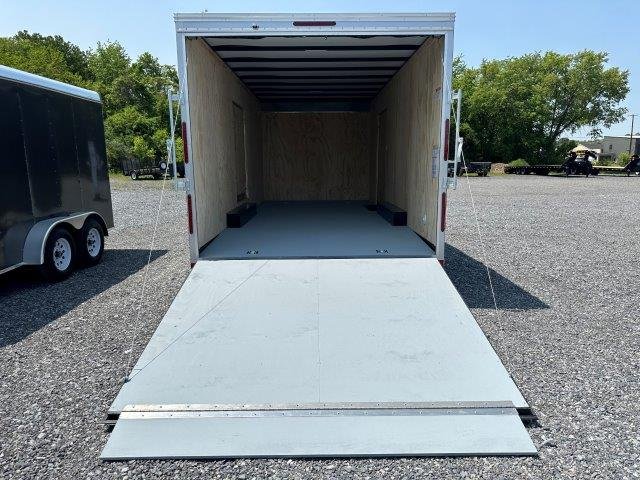Rear Ramp Door, Side Door, Electric Brakes, Deck 96″ W x 20′ L, Rear Door 94″W x 81″T, Interior Height 84″T, Side Door 48″W x 76″T, 6000lb Torsion Axles, Tires 22575R15 Radial, 2-5/16″ Coupler, 82″ Between Fenders, Beaver Tail, LED Lights, Dome Lights, Wall Vents, One Piece Roof, 3/4″ Plywood Painted Flooring, Tie Downs, Screwless Exterior, Extended Tongue with Adjustable Coupler, 6″ Added Height, Get Out Door 46″ W x 59″ T, Aluminum Wheels, Matching Spare