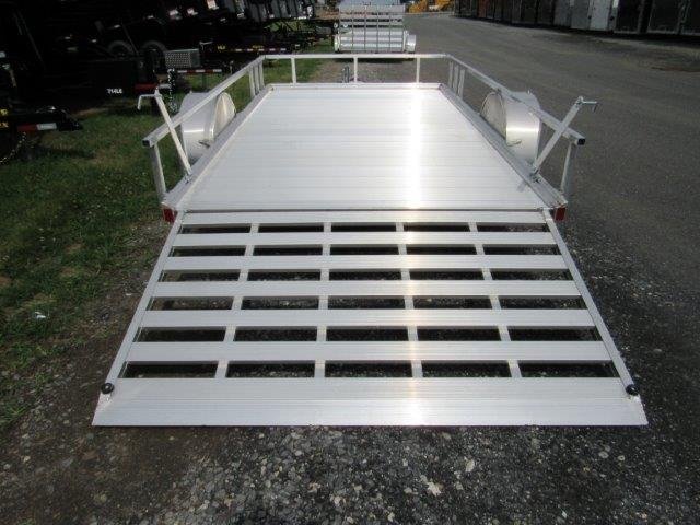 All Aluminum Frame, No Brakes, Deck 76″W x 12’L, 3500lb Dexter Torsion Axle, Tires ST205/75/R14 Radials, Aluminum Wheels, Removable Fenders, 2″ Ball Coupler, Swivel Jack, Safety Chains, Extruded Aluminum Deck, Removable Rail Kit, Five Year Warranty