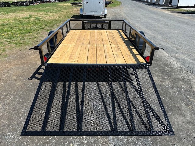 Rear Ramp Gate, Wood Deck, Tube Top Rail, No Brakes, Deck 76″W x 10’L, 3500 lb Spring Axle, Tires 205/75/D15 Bias Ply, 2″ Coupler, Tongue Jack, Mesh Tongue Box