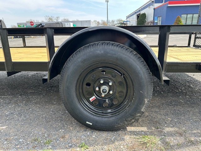 Rear Ramp Gate, No Brakes, Deck 81″W x 14’L, Rear Gate 78″W x 49″T, 3500lb Leaf Spring Axle, Tires ST205/75/D15, 2″ Ball Coupler, Flat 4-Wiring, A-Frame Tongue Jack, Safety Chains, DOT Lighting