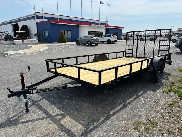 All Pro Trailer Superstore offers a multitude of superior landscape trailers for sale online. If you’re looking for a reliable hauler at an economical price, check out the Carry-On 7 x 14 utility trailer. It features a payload rating of 1,991 pounds and a GVWR of 2,990, making it a practical towing companion for projects large and small. With its 78 inch-wide rear mesh ramp, this model ensures you can load your powered lawn equipment efficiently.