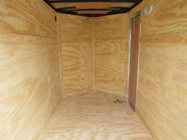 Rear Barn Doors and Side Door, No Brakes, Deck 56″W x 8’L Plus 20″ V-Nose, Rear Door 50″W x 66″T, Side Door 22″W x 64″T, Interior Height 71″, 3500lb Leaf Spring Axle, Radial Tires 20575R15, 2″ Coupler, V-Nose, Roof Vent, EZ Lube Hubs