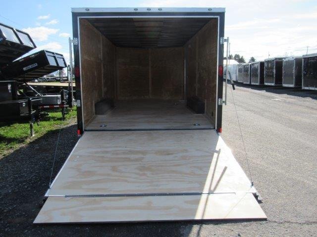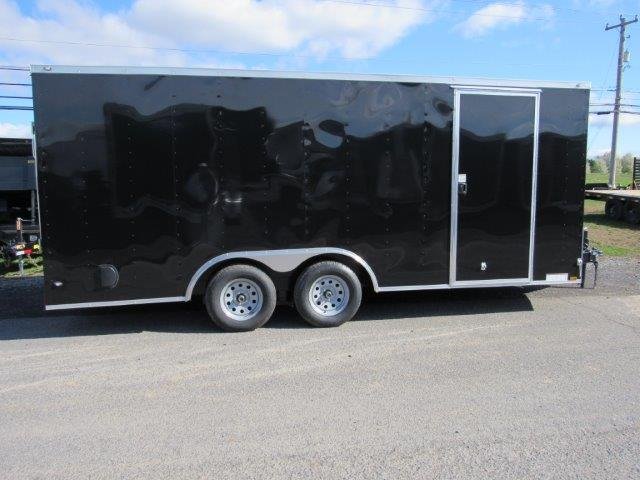 Rear Ramp Door and Side Door, Electric Brakes, Deck 96″W x 18’L Plus 24″ V-Nose, Rear Door 90″W x 74″T, Side Door 34″W x 76″T, Interior Height 79″, 3500lb Leaf Spring Axles, Radial Tires 205/75/R15, 2 5/16″ Coupler, V-Nose, RV Latch