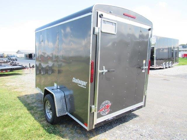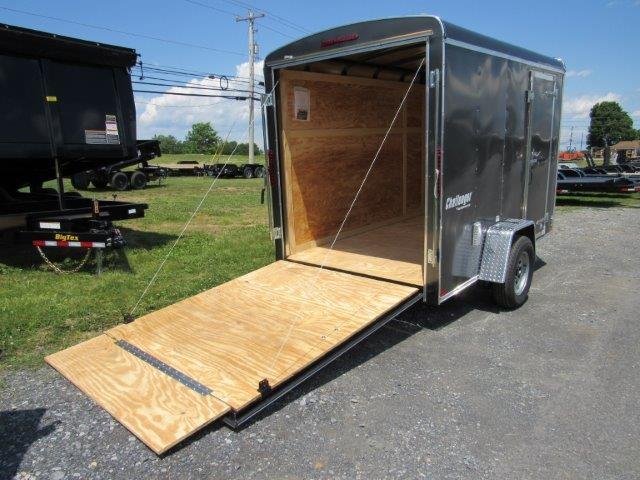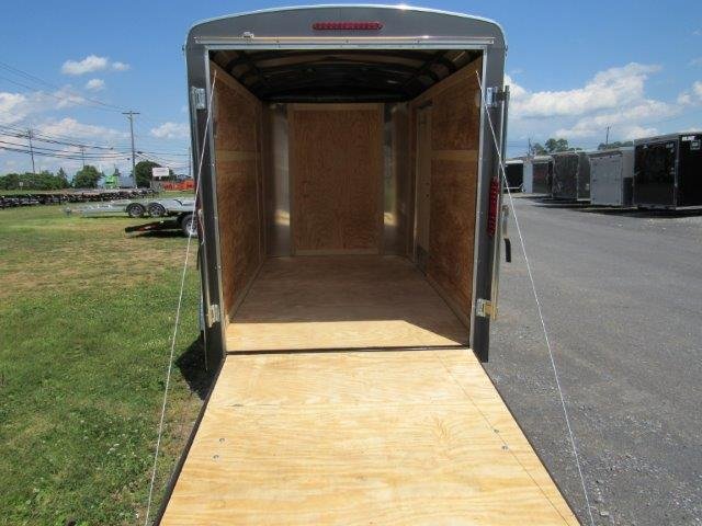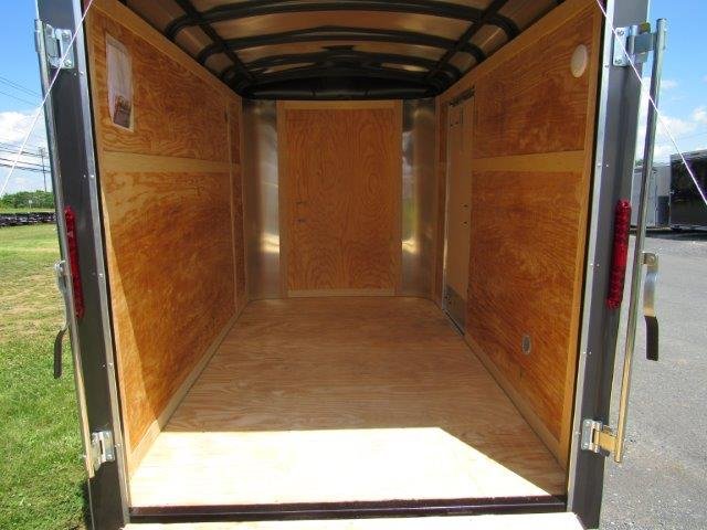 Rear Ramp Door, Side Door, No Brakes, Deck 68″ x 126″, Rear Door 62″ W x 72″ T, Side Door 32″ W x 68″ T, Interior Height 80″, 3500lb EZ Lube Leaf Spring Axle, Tires ST20575R15 Radials, 2″ Ball Coupler, Tongue Jack, Safety Chains, Flat 4 Wiring, Tube Steel Construction, Aluminum Exterior Skin, 3/8″ Plywood Walls, 3/4″ Plywood Floor, Dome Light, Wall Vents, Aluminum Fenders, 12″ Added Height