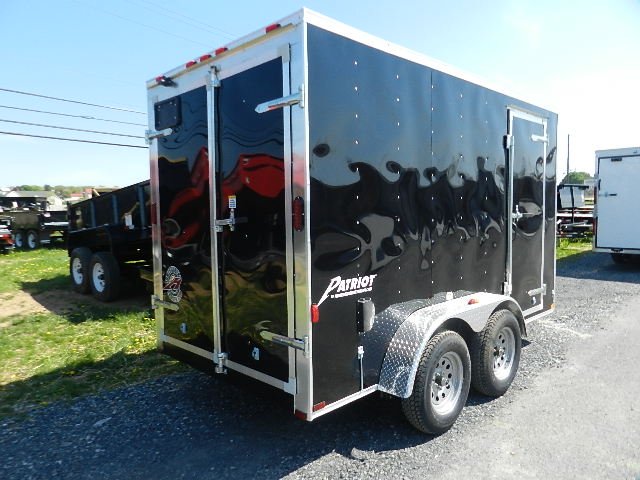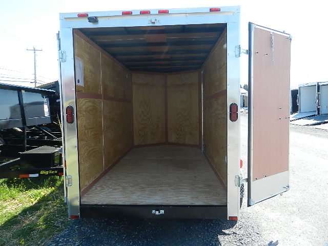 Rear Barn Doors and Side Door, Electric Brakes All Four, Deck 68″W x 12’L, Rear Door 62″W x 74″T, Side Door 32″W x 74″T, Interior Height 78″, 3500lb Spring Axles, Tires 20575R15 Radials, 2″ Coupler, Dome Lights, 3/8″ Plywood Walls, 3/4″ Floor, Wall Vents, V-Nose, 6″ Added Height