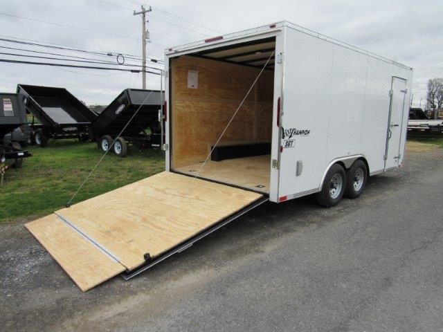 Rear Ramp Door, Side Door, Brakes all Four, Deck 96″W x 16’L, Rear Door 90″W x 78″T, Side Door 29″W x 72″T, Interior Height 78″, 5200lb Spring Axles, Tires 22575R15, 2-5/16″ Coupler, Dome Light, Wall Vents, D-Rings, LED Tail Lights, Transition Flip on Ramp, Tube Frame, 82″ Between Fenders, Extended Tongue, Adjustable Coupler