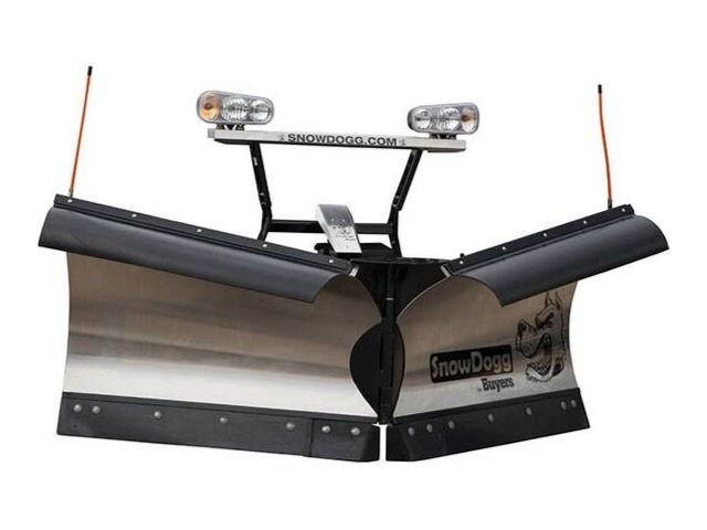 SnowDogg VXF Snow Plows The VXF takes the reliable construction of the EX Plow & packages it in a heavy duty V-Plow for 3/4T and larger trucks, Integral Power Unit uses all standard SAE cartridge valves for ease of service and troubleshooting, Poppet valves and regenerative hydraulics provide maximum speed, Easy to use foot pedal mounting & adjustable jack mechanism, Reliable and easy to service extension spring trip edge design, 1/2″ cutting edge with replaceable center edges, Brushed heavy duty stainless moldboard, Center cap and deflectors for excellent snow