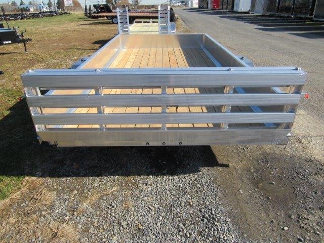 Rear Aluminum Ramp Gate, No Brakes, Deck 83″W x 14’L, Rear Bi-Fold Gate 83″W x 4’H, Tires ST205/75/R15 Radials, 2″ Ball Coupler, All Aluminum Frame, A Frame Tongue, Flat 4 Wiring, LED Lights, Swivel Jack, 3500 lb Spring Axle, ATP Sides