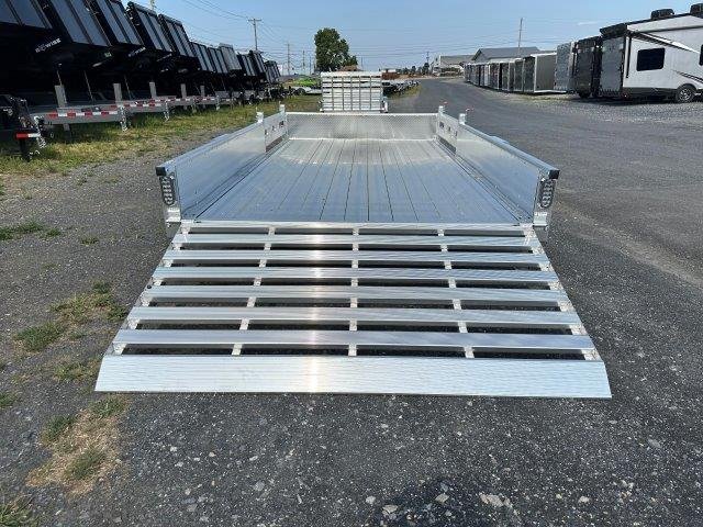 Rear Aluminum Ramp Gate, No Brakes, Deck 83″W x 14’L, Rear Bi-Fold Gate 83″W x 4’H, Removable Side ATV Ramps 11″W x 60″L, Tires ST20575R15 Radial, 2″ Ball Coupler, All Aluminum Frame, A Frame Tongue, Flat 4 Wiring, LED Lighting, Swivel Jack, 3500 lb Spring Axle, Aluminum Deck, 4 D-Rings, Diamond Plate Sides